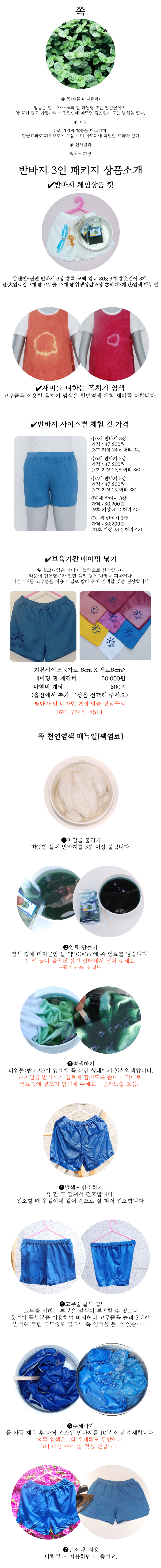 [천연염색 다듬이] 쉽고 간편한 반바지-쪽 3인 패키지