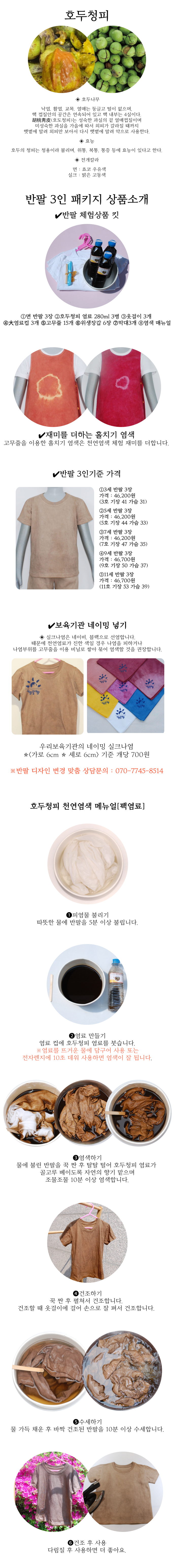 [천연염색 다듬이] 쉽고 간편한 반팔 호두껍질 3인 패키지의 사본