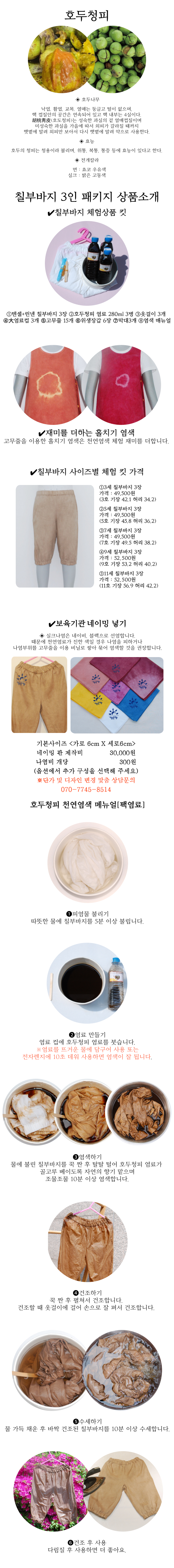 [천연염색 다듬이] 쉽고 간편한 칠부바지-호두껍질 3인 패키지