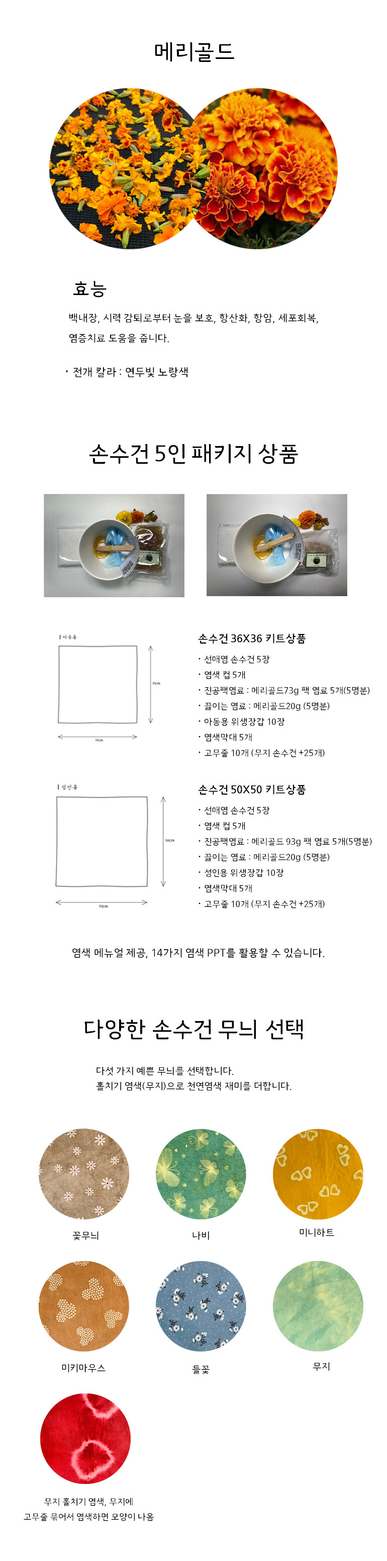 [다듬이] 천연염색 손수건 DIY-메리골드 5인 패키지(아동용,성인용)