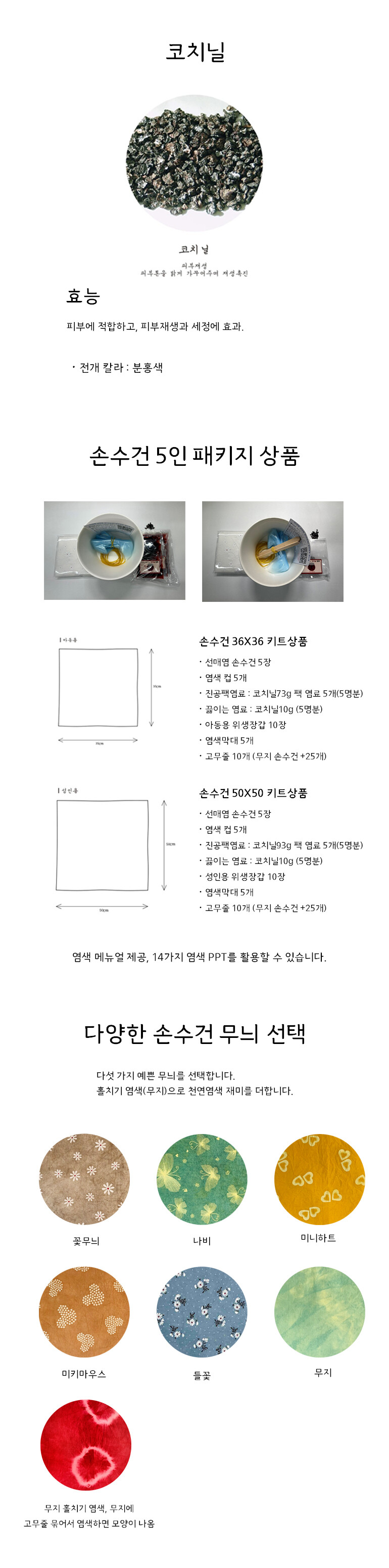 [다듬이] 천연염색 손수건 DIY-코치닐 5인 패키지(아동용,성인용)