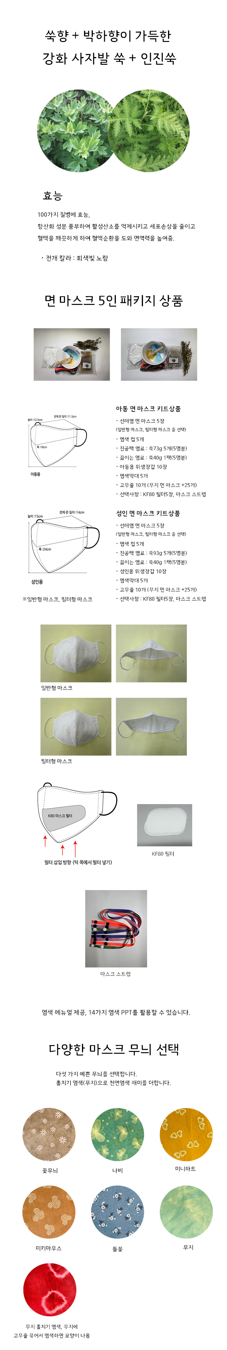 [다듬이] 천연염색 마스크 DIY-쑥(아동,성인용) 5인 패키지