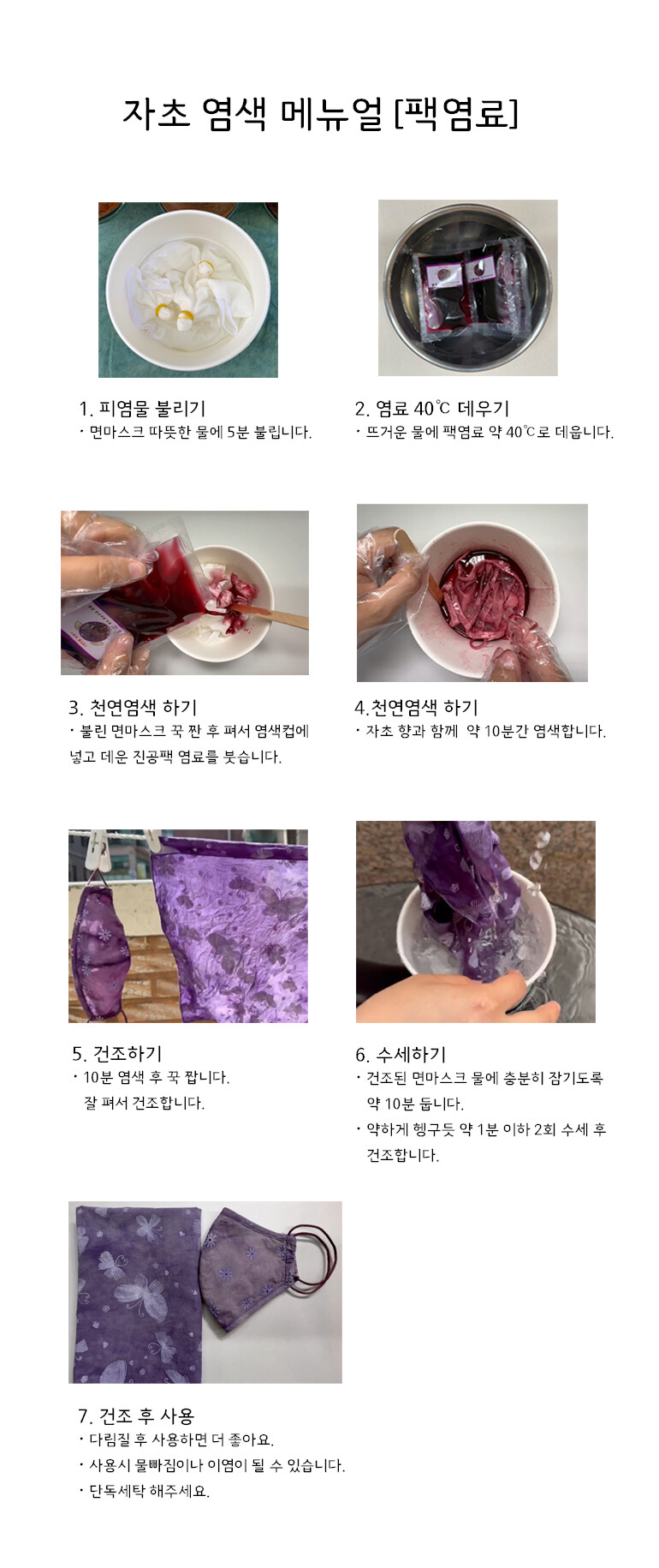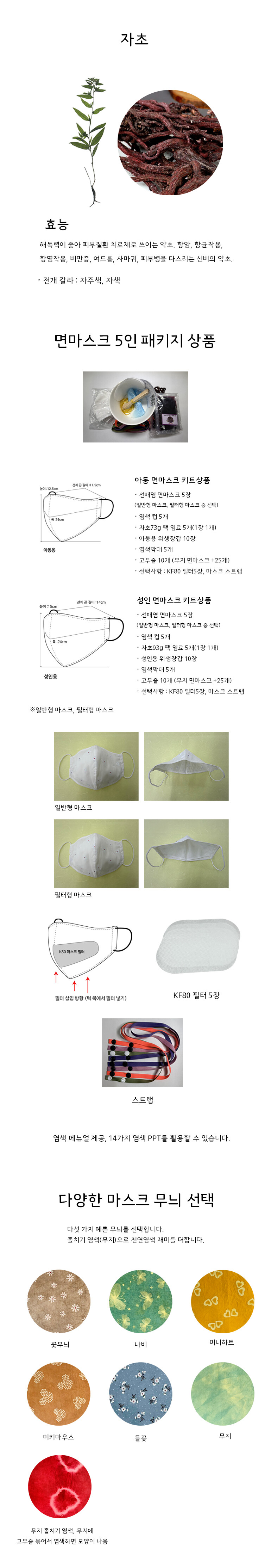 [다듬이] 천연염색 마스크 DIY-자초(아동,성인용) 5인 패키지