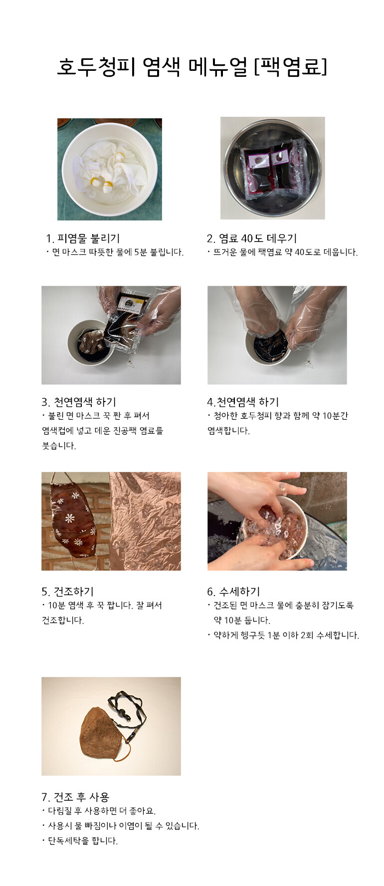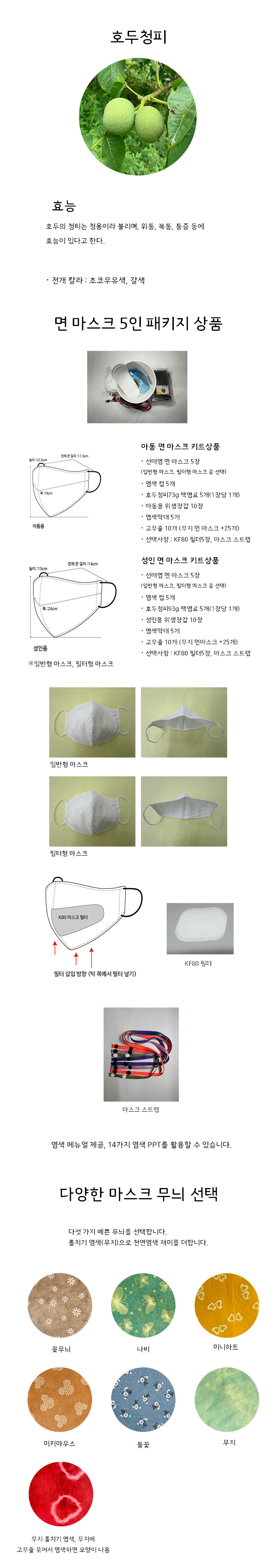 [다듬이] 천연염색 마스크 DIY-호두청피(아동,성인용) 5인 패키지