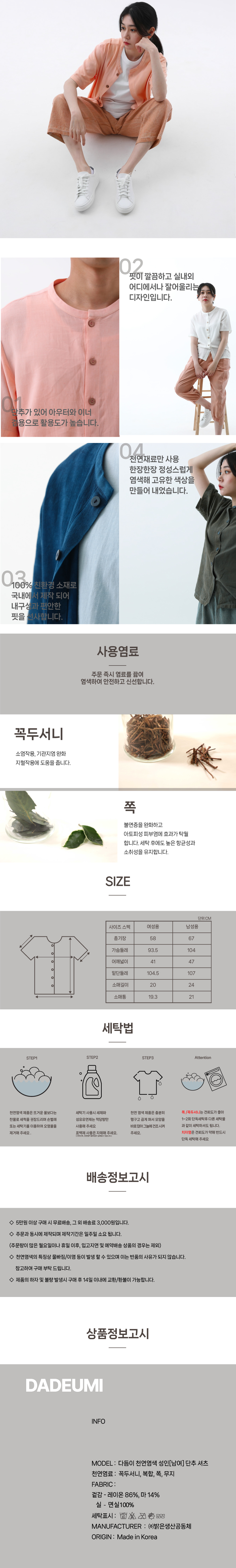 [천연염색 다듬이] 성인 단추 셔츠 - 꼭두서니