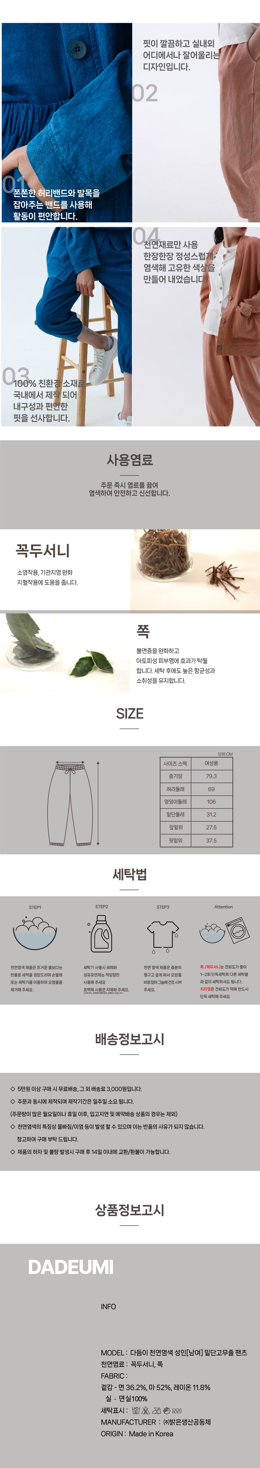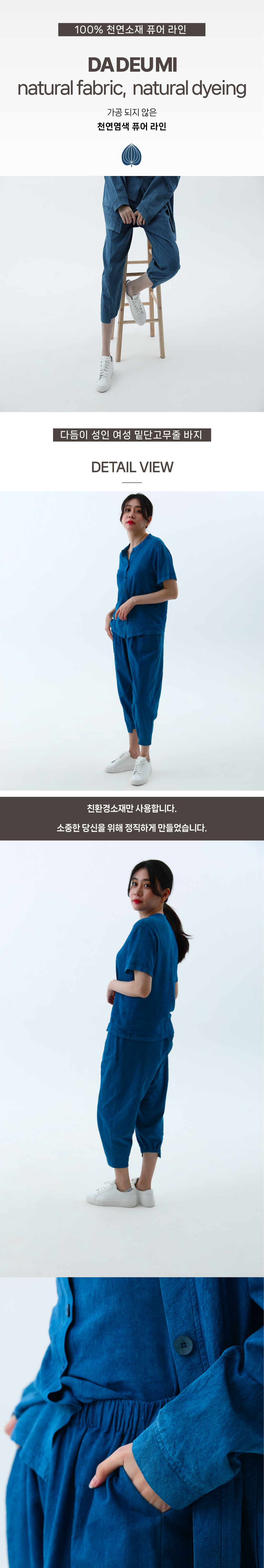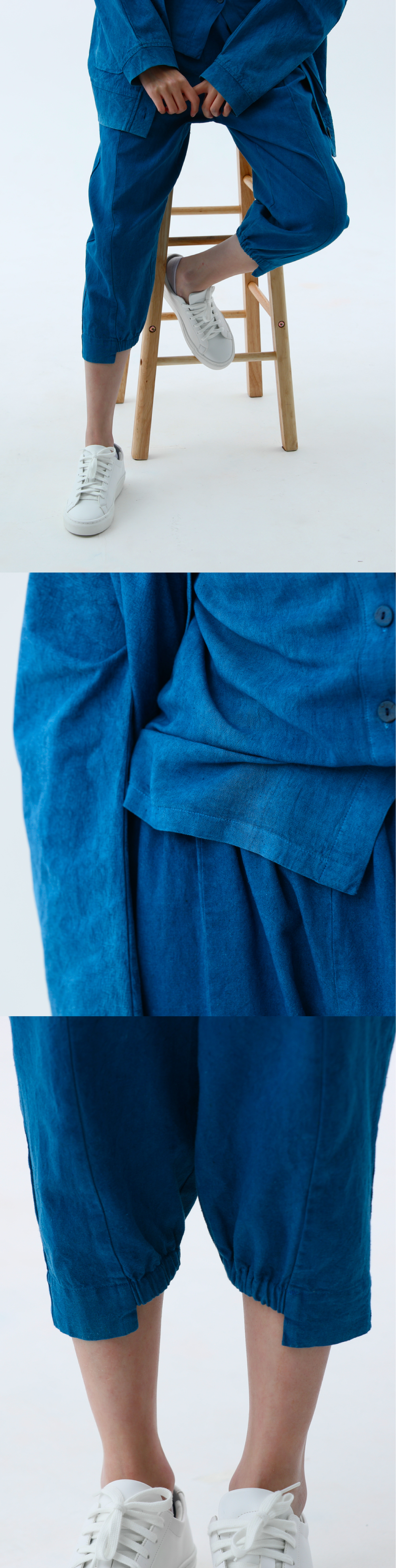 [천연염색 다듬이] 성인 밑단 고무줄 바지 - 쪽