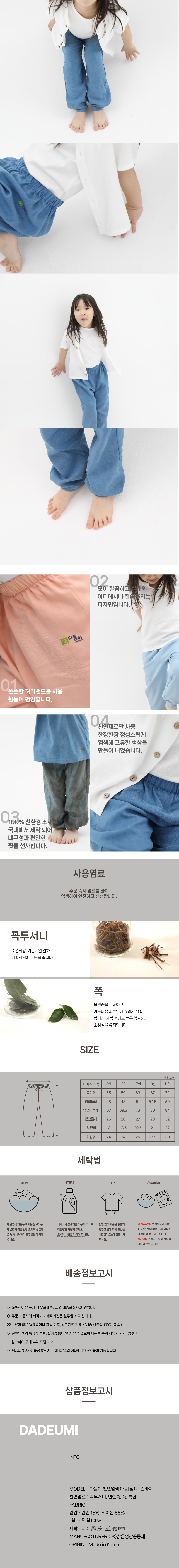 [천연염색 다듬이] 아동 긴바지-쪽