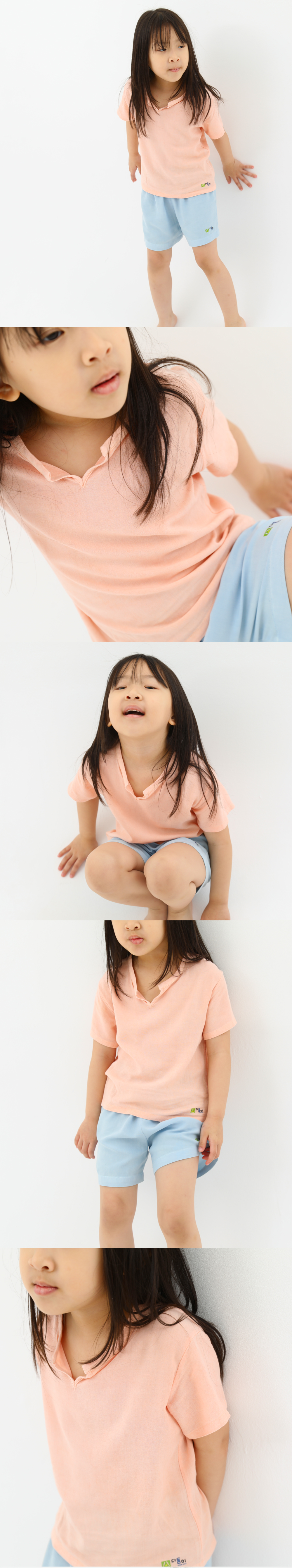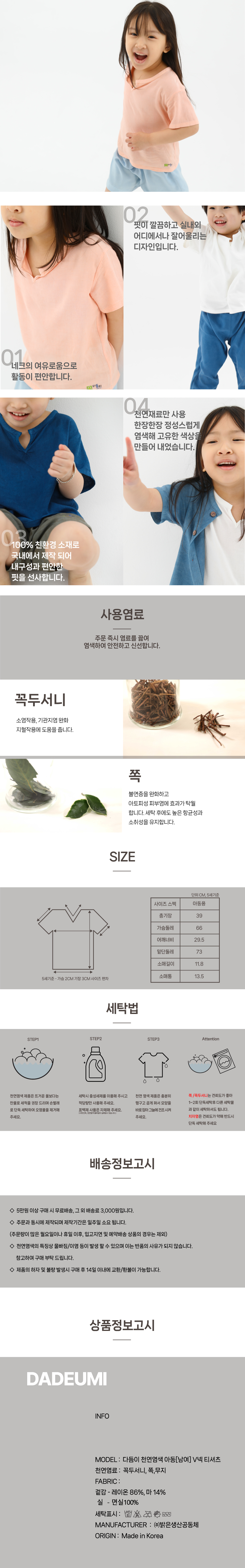 [천연염색 다듬이] 아동 V넥 티셔츠-꼭두서니