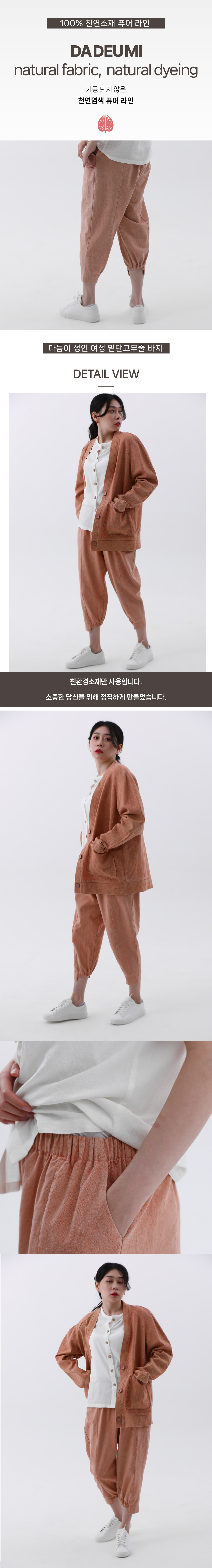 [천연염색 다듬이] 성인 밑단 고무줄 바지 - 꼭두서니