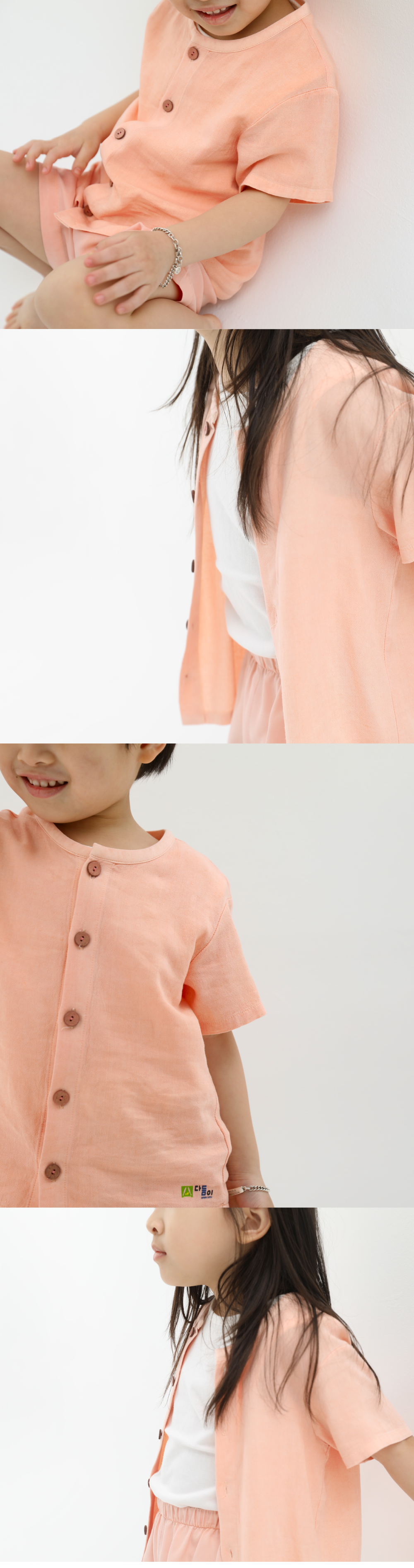 [천연염색 다듬이] 아동 단추 셔츠-꼭두서니