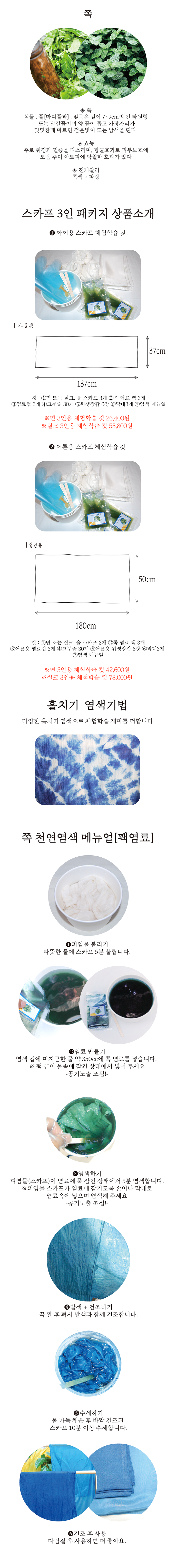 [천연염색 다듬이] 쉽고 간편한 스카프-쪽(아동,성인용) 3인 패키지