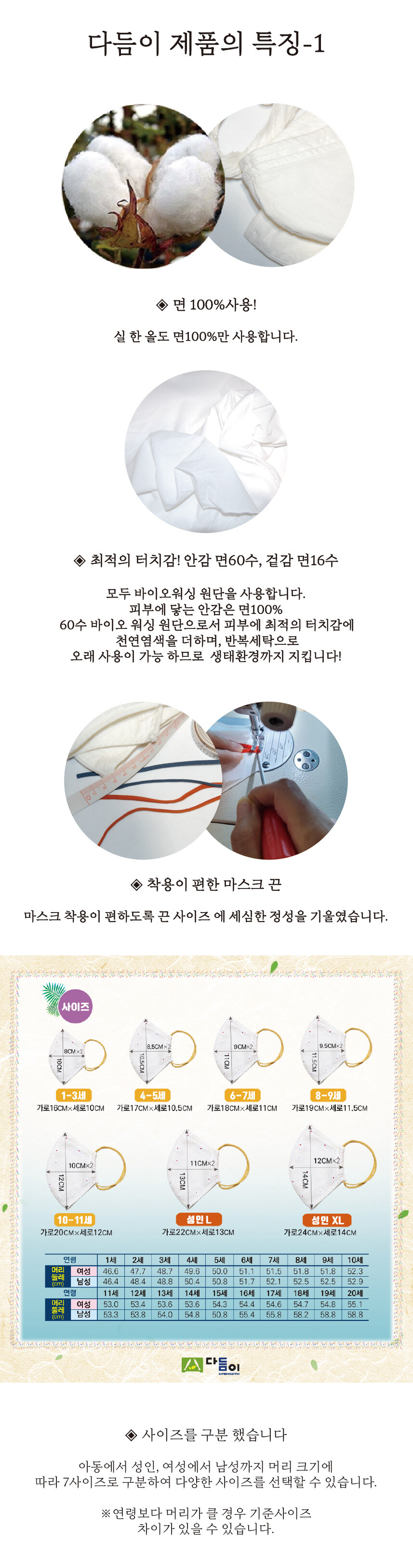 [천연염색 다듬이] 쉽고 간편한 통풍형 필터 마스크-밤꽃(아동,성인용) 5인 패키지