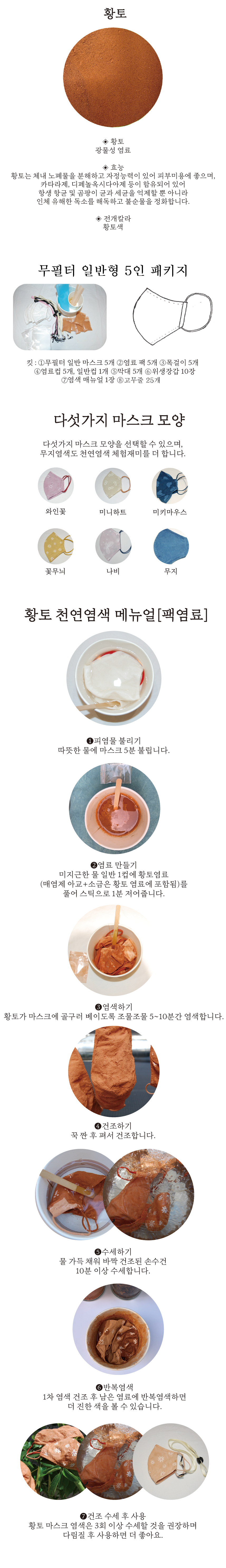 [천연염색 다듬이] 쉽고 간편한 무필터 일반형 마스크-황토(아동,성인용) 5인 패키지