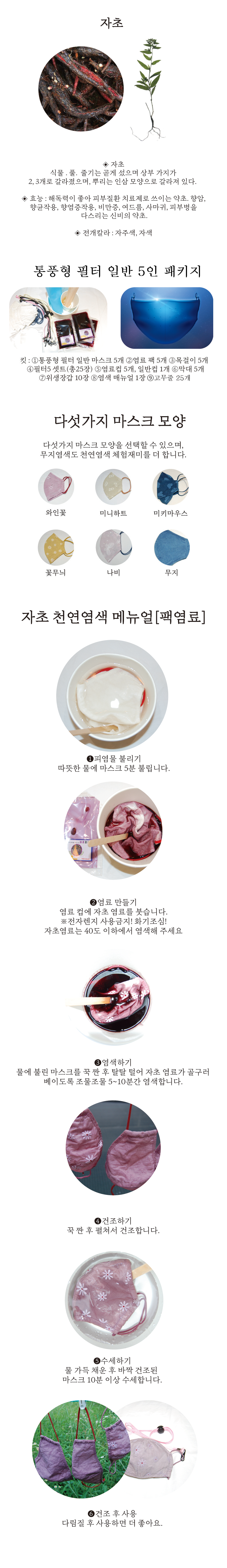 [천연염색 다듬이] 쉽고 간편한 통풍형 필터 마스크-자초(아동,성인용) 5인 패키지